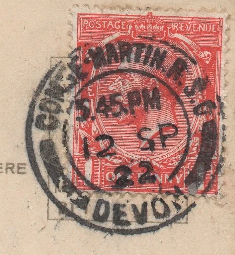 #406 Combe Martin.R.S.O. Devon double-ring handstamp with bars 1922. Credit:
